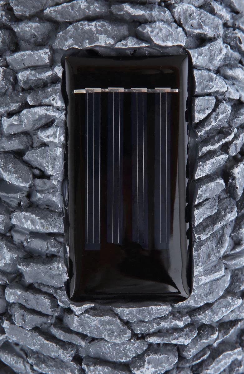 Bereits am Tage ist die runde Kunststoff Solarleuchte in Steinoptik ein richtiger Hingucker. Bei einsetzender Dämmerung und geladenem Akku beginnen die 48 inkludieren LEDs, welche hintereinander auf einem LED-Band angebracht sind, warmweiß zu leuchten.