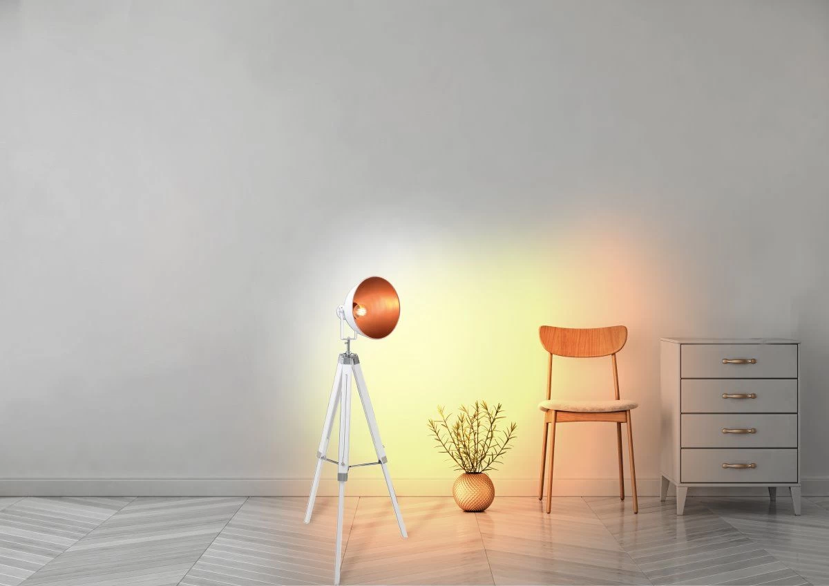 Die dekorative Stehleuchte Chistie aus dem Hause Näve Leuchten erhalten Sie im Stil eines Retro Scheinwerfers. Gefertigt aus Holz und Metall, wurde die Lampe in ansprechendem Weiß und Kupfer lackiert. Mit dezenten Standfüßen in Stativform ausgestattet, ist die Retroleuchte ein absoluter Blickfang für Ihre Wohnräume. In Kontrast zur weißen Farbgebung runden die kupferfarbenen Details im Lampenschirm das Gesamtbild der Leuchte ab. Mit dieser Farbkombination liegen sie genau richtig, da sich Kupfer perfekt mit anderen Farbtönen kombinieren lässt.