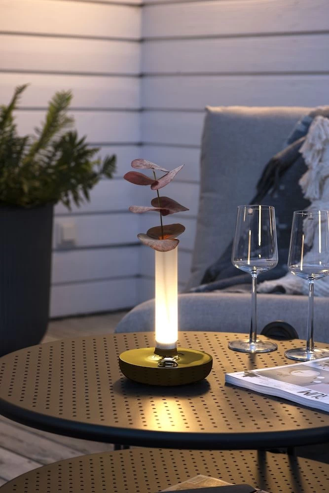 Peppen Sie Ihre Terrasse oder Ihren Balkon daher mit dieser portablen Tischleuchte auf und profitieren Sie vom Nutzen und der Ästhetik von einer gut geplanten Außenbeleuchtung.