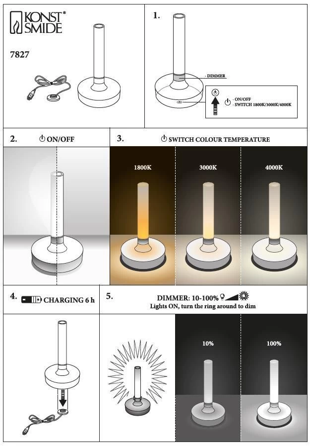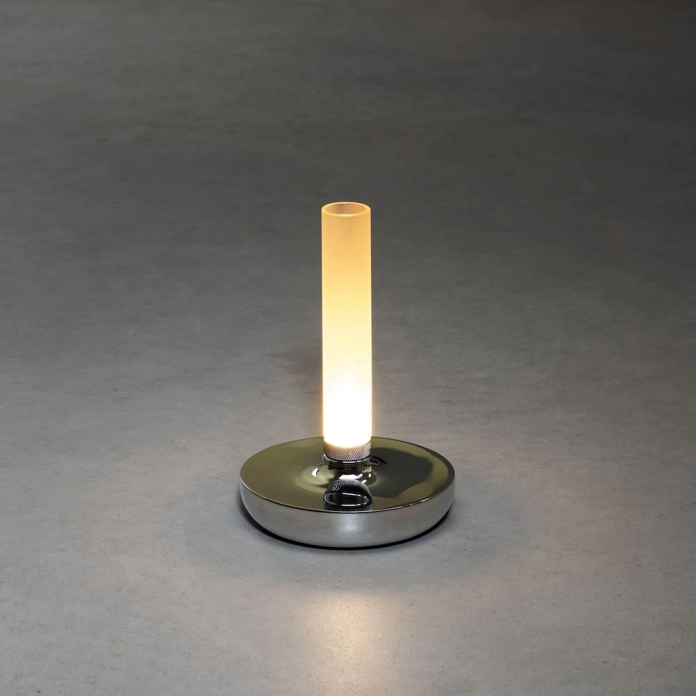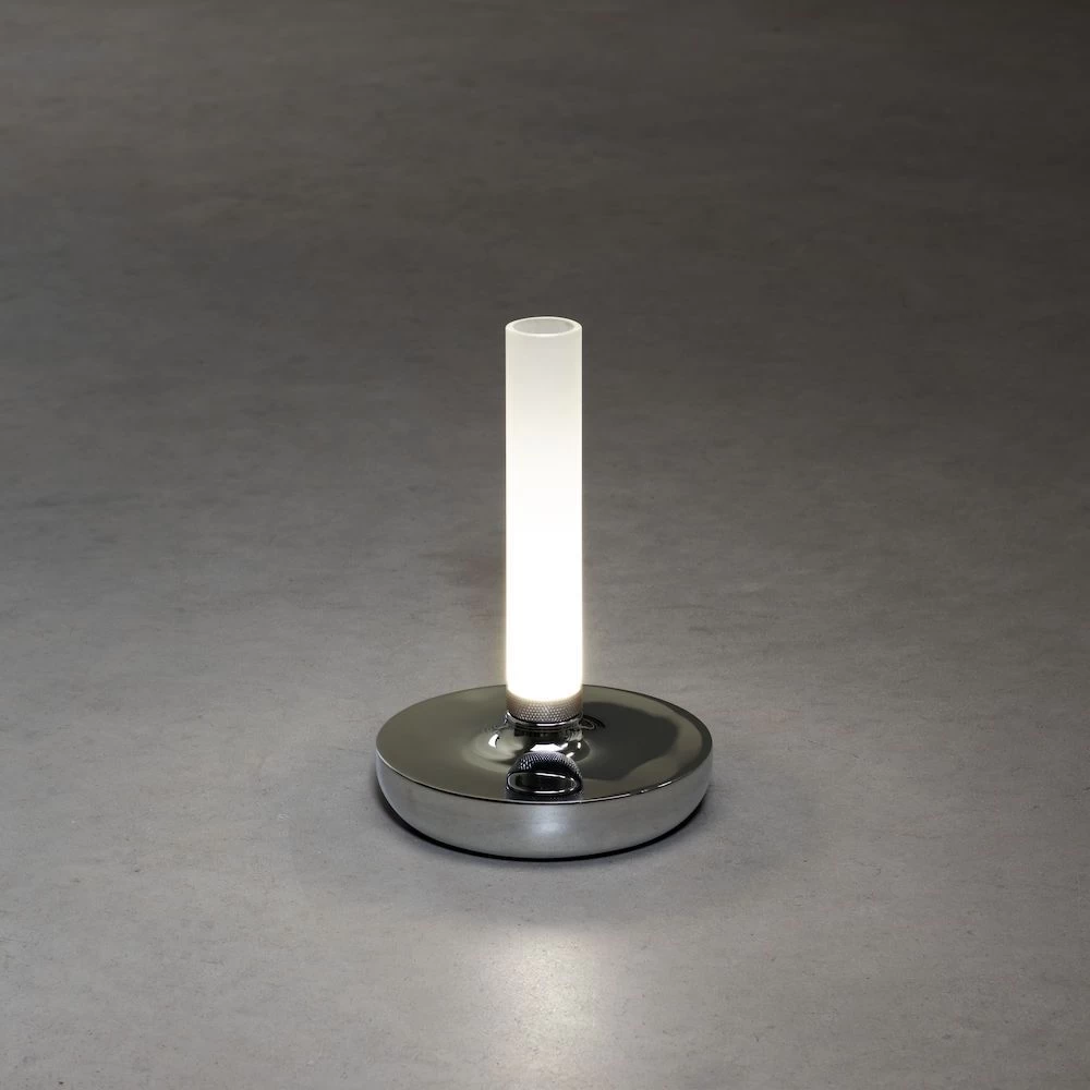 Die Leuchtenfamilie Biarritz von Konstsmide, mit einem erstklasssigen Design, gehört zu den akkubetriebenen Outdoor-Leuchten. Auf der Unterseite des Fußes kann eine USB-Ladestation angebracht werden, welche dem Lieferumfang angehört. Der Akku versorgt die inkludierte LED der Tischlampe nach voller Aufladung bis zu 9h mit Energie. Die modern gehaltene Tischleuchte Biarritz, welche auch als Vase verwendet werden kann, vereint satiniertes zylindrisches Glas mit einem runden Fuß aus silberfarbenem rostfreien Stahl. Dank satiniertem Schirm erhalten Sie hier ein dekoratives Leuchtobjekt für Ihren Tisch, welches ein angenehm diffuses Licht spendet.