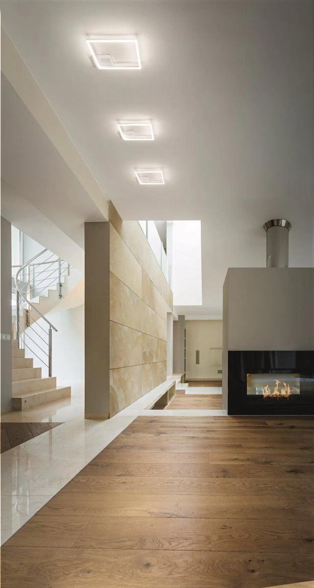 Diese schlichte aber zugleich stilvolle rechteckige dimmbare LED Deckenleuchte besteht aus einem leuchtenden Rahmen mit Methacrylatabdeckung in weiß der am einem 170 mm großen Metallgestell angebracht ist. Die 3510 Lumen verbreiten ein angenehmes warm weißes Licht und sind zudem noch Energiesparend.