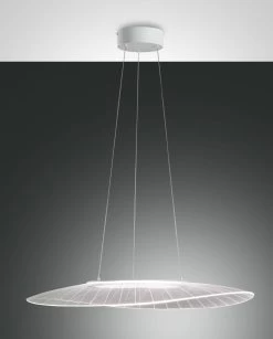 Die raffiniert gestaltete Pendelleuchte Vela von Fabas Luce zeichnet sich durch einen sanft geschwungenen ovalen Acrylschirm aus, welcher in der Mitte ein blendfreies LED verbirgt. Der in seiner größten Ausdehnung 780mm betragende weiß transparente Leuchtenschirm ist höhenverstellbar von 500 bis max. 2000mm. Dies ermöglicht eine optimale Ausleuchtung mit diffusem Licht und sorgt somit für eine gemütliche Wohnatmosphäre.