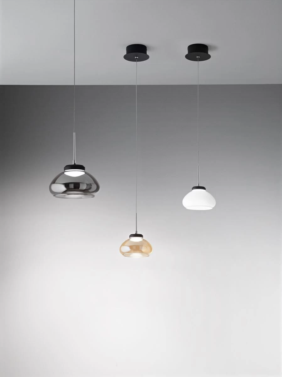 stylische, unaufdringliche LED-Pendelleuchte mit markantem geblasenen Glas