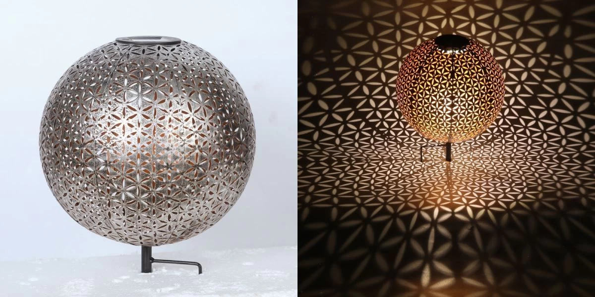 Bereichern Sie daher Ihren Garten mit dieser faszinierenden silbergaru antiken LED Solarkugel mit Dekorstanzungen in Form der Lebensblume.