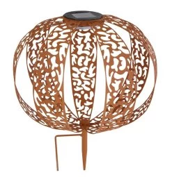 Bereichern Sie Ihren Garten mit Licht und dieser schicken rostfarbenen LED Solarleuchte Kugel aus Streifen mit Dekorstanzungen, welche bereits am Tage aufgrund des tollen Designs Akzente setzt.
