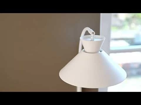 Die Dial Tischlampe aus weißem Metall hat ein luftig leichtes Design-Konzept. Der offene Schirm der Dial lässt aufgrund seiner geometrischen Form viel Licht durchscheinen und sorgt für einen dekorativen Uplight-Effekt. Folgend erhält die Tischleuchte den Anschein einer schwebenen Wirkung. Der gebogene Stab der Leuchte sorgt für einen sanften Ausdruck, wodurch dieser ebenso das Konzept der Leichtigkeit unterstützt.