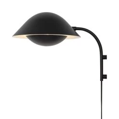 Die Wandleuchte Freya in schwarz hat einen Schirmdurchmesser von 25cm und eine Gesamthöhe von 26cm. Sie ist mit einer E14 Fassung ausgestattet. Wählen Sie Ihr perfektes Licht indem Sie die Wandlampe mit einem Leuchtmittel in der für Sie passenden Lichtfarbe bestücken. Bedienen können Sie Ihr Lichtobjekt über einen Schalter auf dem 150cm langen Kabel.