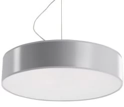 Die silberne zylindrische Pendelleuchte aus dem Hause Sollux-Lighting hat nicht nur eine einzigartige und schlichte Optik, sondern ist auch sehr gut verarbeitet. Der hängende Schirm hat einen Durchmesser von 45 cm und kann max. 80cm unter der Decke hangen. Der silberne moderne Look lässt sich wunderbar in neumodische und hochwertige Wohnungen, Cafés, Bars integrieren. Eine hohe Lebensdauer garantiert die Fertigung aus hochwertigem Kunststoff. Die Schirmfarbe lässt generell ruhiges nicht zu grelles Licht scheinen. Eine Besonderheit: Sollux-Lighting liefert bewusst kein Leuchtmittel mit: So kannst man frei wählen, ob man eine helle oder gedämpfte Beleuchtung einsetzen möchte. So schafft man mit der Lampe eine ganz besondere Atmosphäre mit Farblichtvarianten.