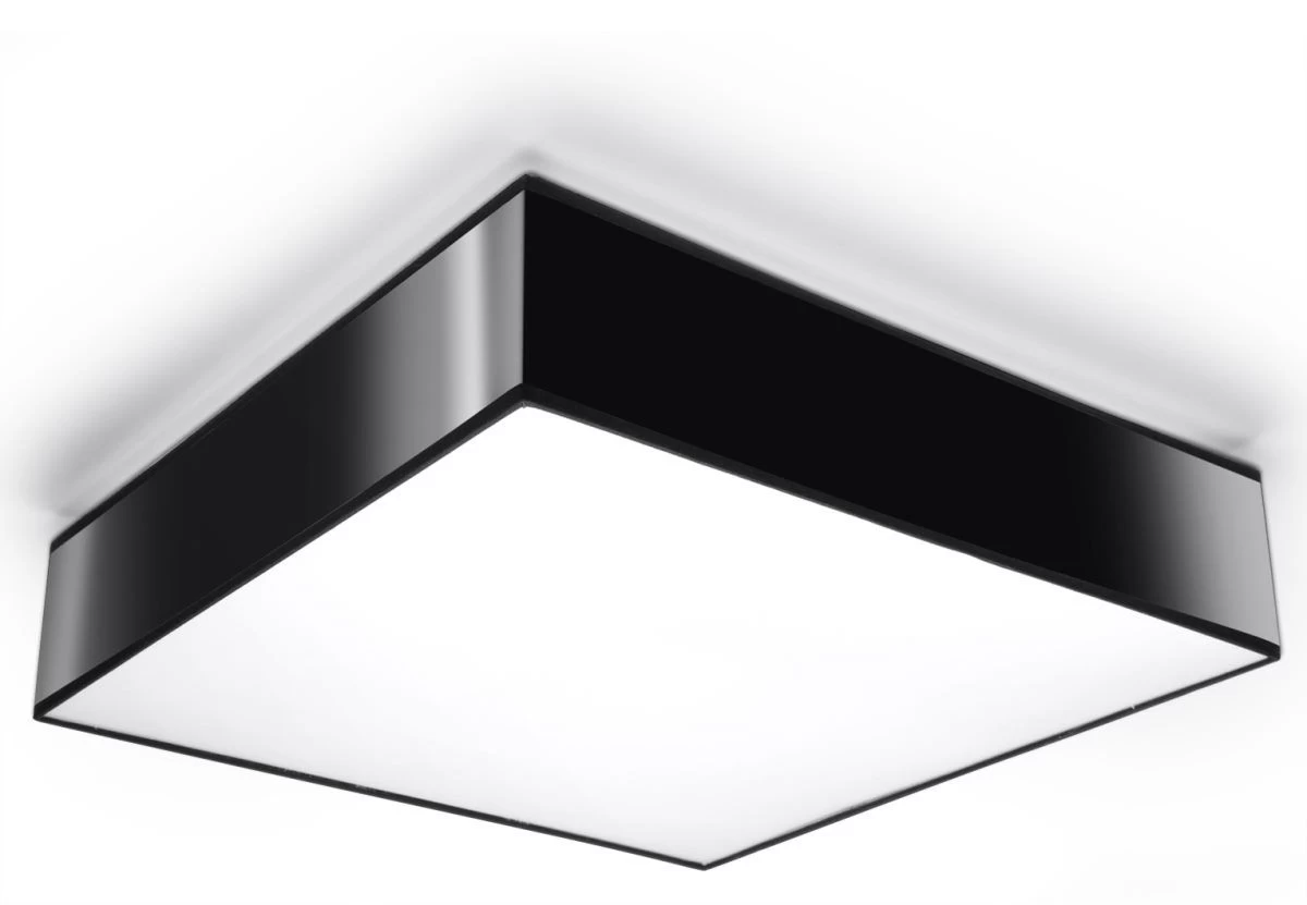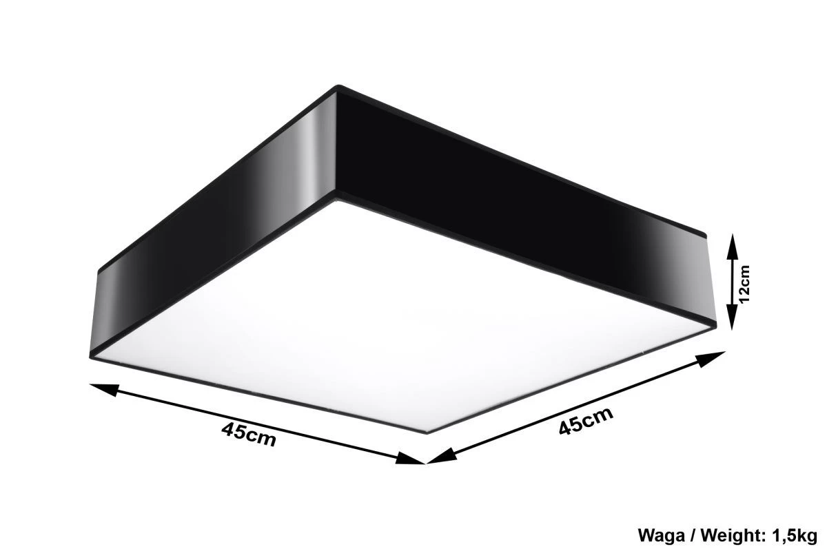 Die schwarze quadratische Deckenleuchte HORUS mit 45x45cm Größe aus dem Hause Sollux-Lighting hat nicht nur eine einzigartige und schlichtes Design, sondern ist auch sehr gut verarbeitet. Die Leuchte ist aus hochwertigem Kunststoff gefertigt, das garantiert eine hohe Lebensdauer. Da die Lampe über drei gängige E27 Sockel mit max.60W verfügt, gibt es eine große Auswahl an passenden Leuchtmitteln zur Auswahl. Die maximale Lampenhöhe ist 12cm und so vorteilhaft für die meisten Einsatzorte. Der moderne und minimalistische Look lässt sich wunderbar in hochwertige Wohneinrichtungen integrieren. In diesem Licht erstrahlt jeder Raum oder Bereich als Hauptbeleuchtung.