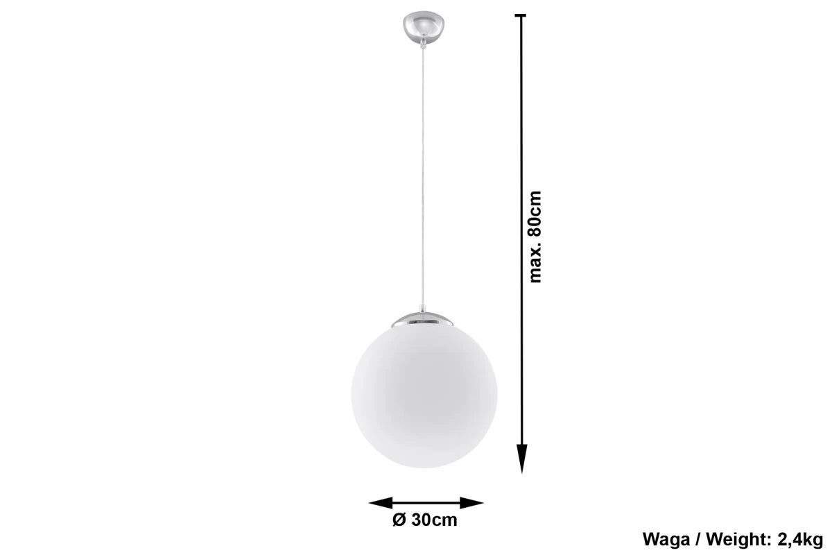 Mit der Kugelhängelampe UGO aus einer weißen Glaskugel mit 30cm Durchmesser ist es wieder einmal gelungen im modernen Wohnbereich ein Zeichen zu setzen. Durch den Glaskörper der durch eine Chromeinfassung gehalten wird kann das Licht gleichmäßig im Raum verteilen. Die Lichtstärke ist,da dimmbar, individuell einstellbar. Eine E27 Fassung macht die Auswahl der Lichtquelle leicht. Dadurch scheinen die Einsatzmöglichkeiten unbegrenzt. Die Höhe bzw. Tiefe der Hängelampe lässt sich durch unterschiedliche Aufhängung einstellen. zur Ergänzung gibt es verschiedene Größen der Glaskörper.