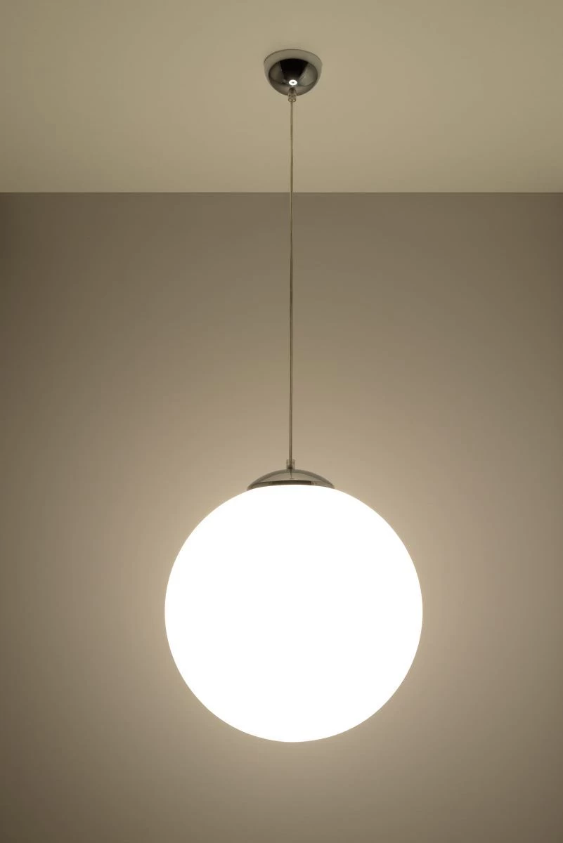 Mit der Hängelampe UGO aus einer weißen Glaskugel umit 40cm Durchmesser ist es wieder einmal gelungen im modernen Wohnbereich ein Zeichen zu setzen. Durch den Glaskörper der durch eine Chromeinfassung gehalten wird kann das Licht gleichmäßig im Raum verteilen. Die Lichtstärke ist,da dimmbar, individuell einstellbar. Eine E27 Fassung macht die Auswahl der Lichtquelle leicht. Dadurch scheinen die Einsatzmöglichkeiten unbegrenzt. Die Höhe bzw. Tiefe der Hängelampe lässt sich durch unterschiedliche Aufhängung einstellen. zur Ergänzung gibt es verschiedene Größen der Glaskörper.